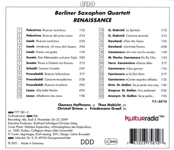 Wykonawca | Berliner Saxophon Quartett |