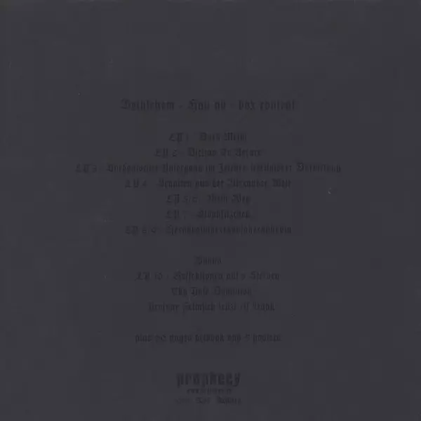 Bethlehem: Hau Ab PIC | LTD Wersja na winylu 10LP/Zestaw pudełkowy w Picture Disc ograniczone wydanie. Ta konkretna edycja została wydana w Niemcy w wydawnictwie Prophecy Productions dnia 9. października 2014. Album sięga do gatunku Rock, Industrial i Black Metal. Picture Disc 10pic LP Boxset & 180gm Special Limited Edition.