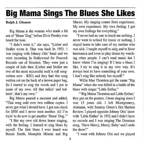 | Wykonawca | Big Mama Thornton | Muddy Waters Blues Band |
