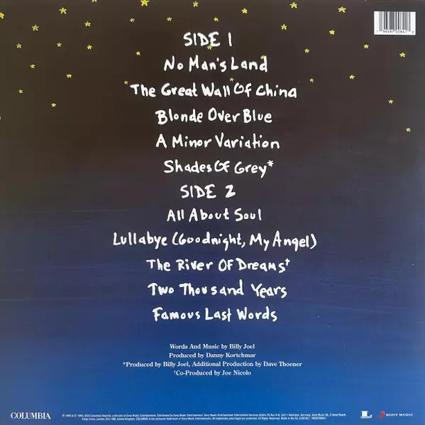 Billy Joel: River Of Dreams Wersja na winylu LP w standardowe wydanie. Ta konkretna edycja została wydana w Na całym świecie w wydawnictwie Columbia we współpracy z Legacy i Sony Music dnia 11. lipca 2025. Album sięga do gatunku Rock, Pop i Pop Rock.