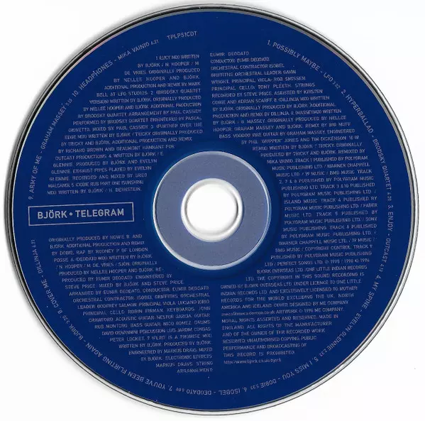 Björk: Telegram Wersja na CD w standardowe wydanie. Ta konkretna edycja została wydana w WIELKA BRYTANIA w wydawnictwie One Little Indian dnia 12. sierpnia 2022.