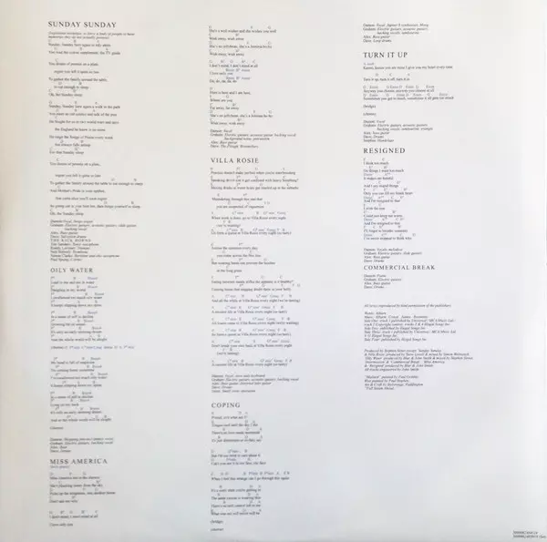 Bass Guitar Alex James (2) | Bells [Typewriter Bell] Stephen Street | Drums Dave Rowntree | Electric Guitar, Acoustic Guitar, Backing Vocals, Synth [Anti Cat And Dog Moog Tone] Graham Coxon | Oboe, Cor Anglais, Soprano Saxophone Kate St. John | Vocals Damon Albarn