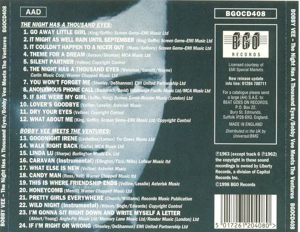 | Tytuł | The Night Has Thousand Eyes/ Bobby Vee Meets The Ventures |