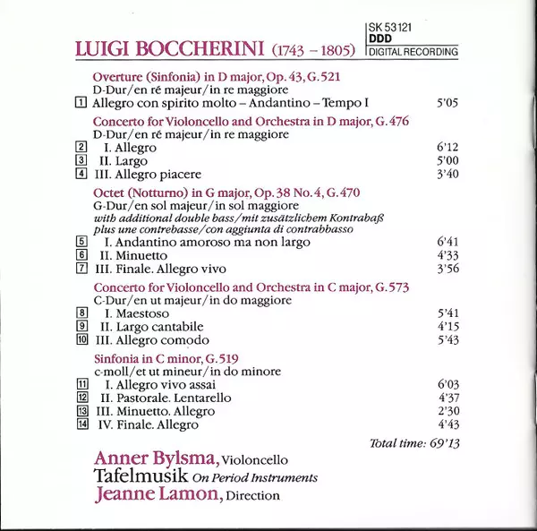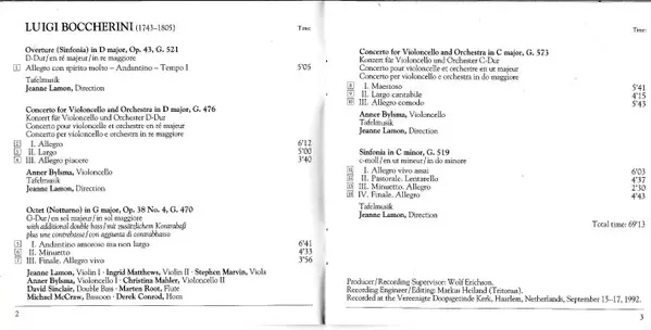 | Wykonawca | Luigi Boccherini | Tafelmusik Baroque Orchestra | Jeanne Lamon | Anner Bylsma |