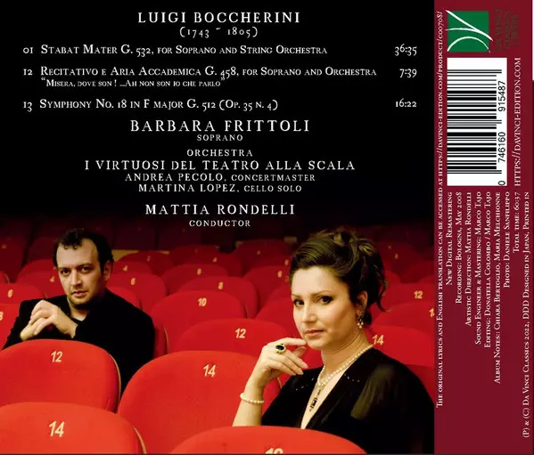 | Wykonawca | Luigi Boccherini | Barbara Frittoli | Mattia Rondelli | I Virtuosi Del Teatro Alla Scala |