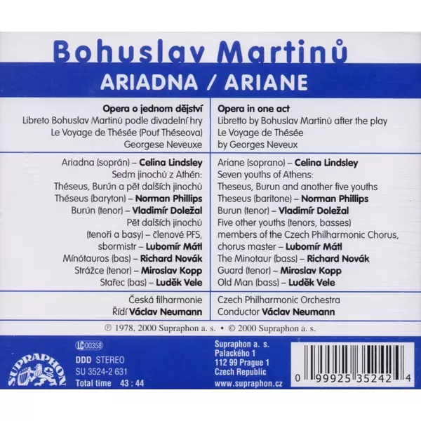 | Wykonawca | The Czech Philharmonic Orchestra | Václav Neumann | Bohuslav Martinů | Richard Novák | Vladimír Doležal | Luděk Vele | Celina Lindsley | Miroslav Kopp | Norman Phillips |