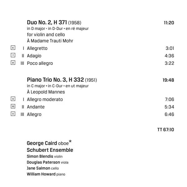 Wykonawca | Bohuslav Martinů | The Schubert Ensemble Of London | George Caird |