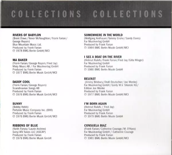 Boney M. to euro-karaibska grupa wokalna stworzona przez niemieckiego producenta nagrań Franka Fariana. Początkowo działająca w Niemczech Zachodnich, grupa osiągnęła dużą popularność w erze disco pod koniec lat 70-tych. Boney M. Brzmienie grupy charakteryzuje się mieszanką reggae, ...