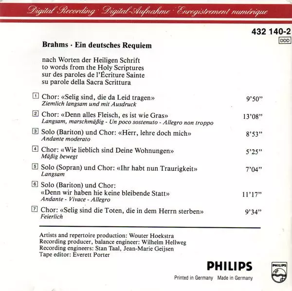 | Ein Deutsches Requiem Op. 45 (Für Soli, Chor Und Orchester) |