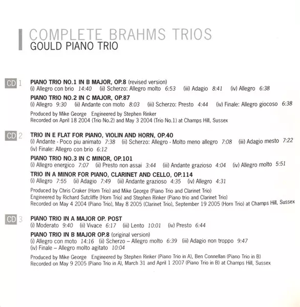 Wykonawca | Johannes Brahms | Gould Piano Trio |