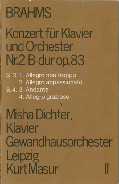 | Wykonawca | Johannes Brahms | Gewandhausorchester Leipzig | Kurt Masur | Misha Dichter |
