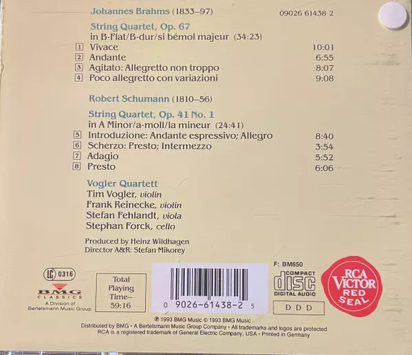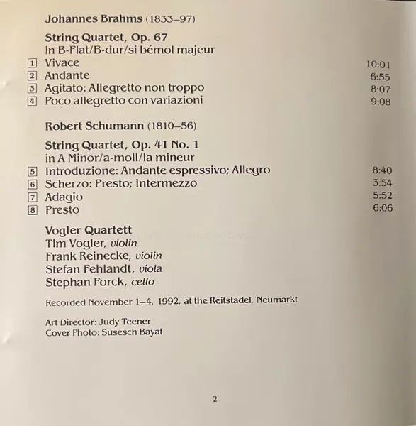 | Wykonawca | Johannes Brahms | Robert Schumann | Vogler Quartett |