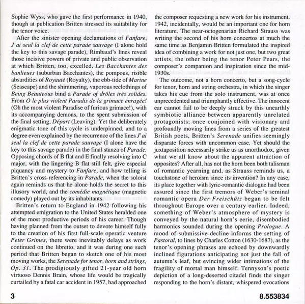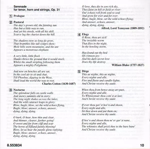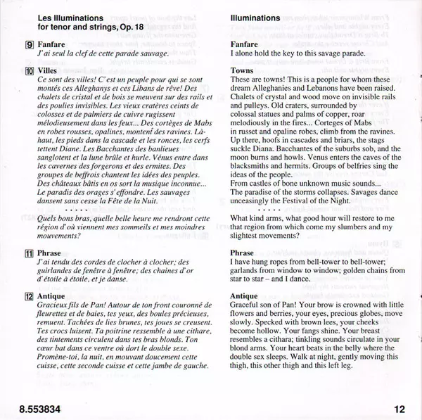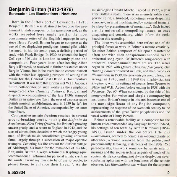 | Les Illuminations For Tenor And Strings, Op. 18 | 21:36 min | |