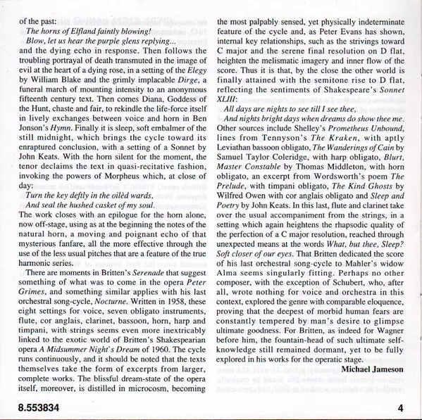| Nocturne For Tenor, 7 Obligato Instruments And Strings, Op. 60 | 25:04 min |