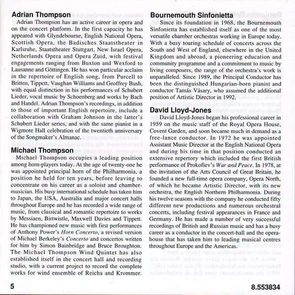 | Wykonawca | Benjamin Britten | David Lloyd-Jones | Bournemouth Sinfonietta | Michael Thompson | Adrian Thompson |