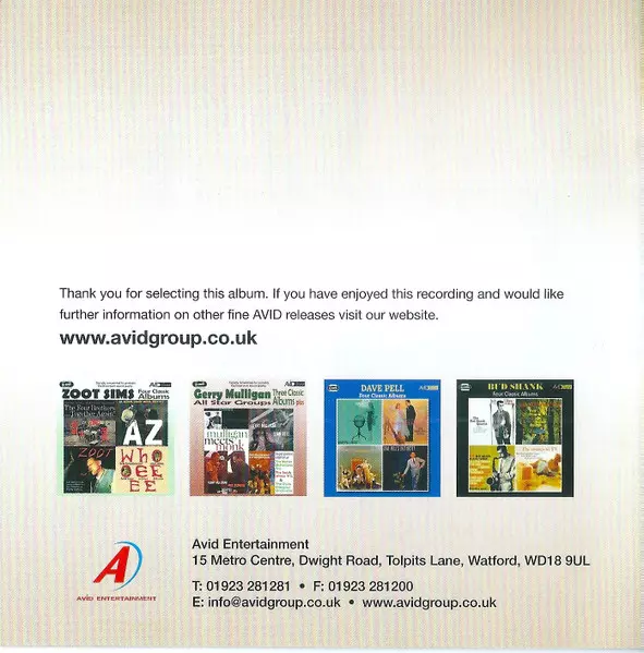Bud Shank: Four Classic Albums Wersja na 2CD w zremasterowane wydanie. Ta konkretna edycja została wydana w WIELKA BRYTANIA w wydawnictwie Avid Jazz we współpracy z Avid Entertainment dnia 16. lipca 2013. Album sięga do gatunku Jazz, CoolJazz i Bop.