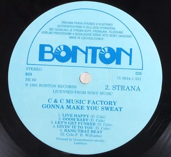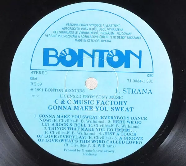 C + C Music Factory: Gonna Make You Sweat Wersja na winylu LP w standardowe wydanie. Ta konkretna edycja została wydana w Czechosłowacja w wydawnictwie Bonton roku 1991. Album sięga do gatunku Muzyka elektroniczna, Hip Hop, House, Contemporary R&B i Hip-House.