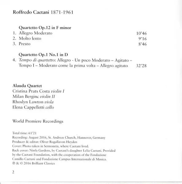 | Wykonawca | Roffredo Caetani | Alauda Quartet |