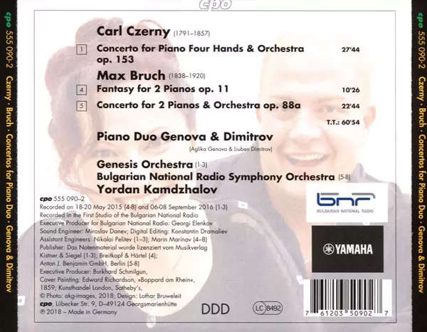 | Wykonawca | Max Bruch | Carl Czerny | Piano Duo Genova & Dimitrov | Bulgarian Radio Symphony Orchestra | Yordan Kamdzhalov | Genesis Orchestra |