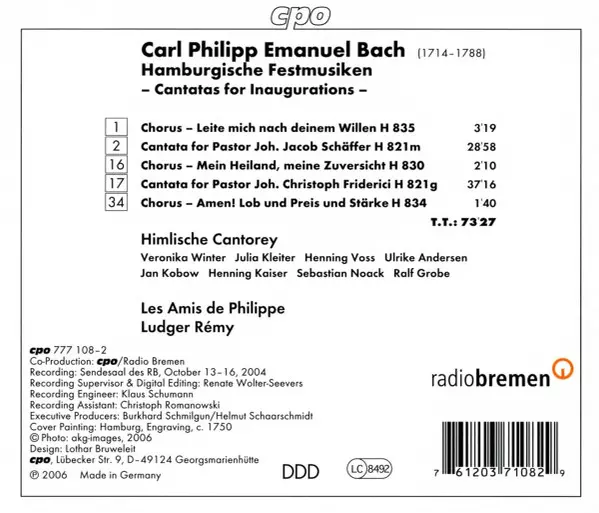 Wykonawca | Carl Philipp Emanuel Bach | Ludger Rémy | Les Amis De Philippe | Himlische Cantorey |