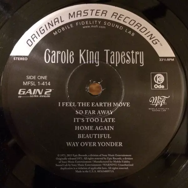 Carole King: Tapestry LTD | NUM Wersja na winylu LP w ograniczone indywidualnie numerowane zremasterowane wydanie. Ta konkretna edycja została wydana w USA w wydawnictwie Mobile Fidelity Sound Lab we współpracy z Ode Records (2) i Sony Music Commercial Music Group dnia 3. grudnia 2021.