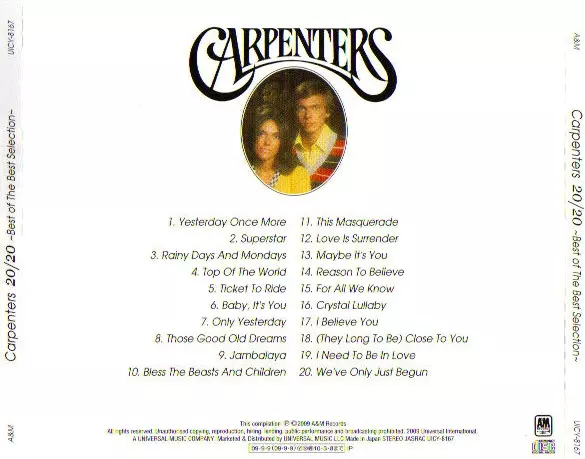 The Carpenters to amerykański duet wokalno-instrumentalny składający się z rodzeństwa Karen i Richarda Carpenter. Dzięki charakterystycznemu i emocjonalnemu kontraltowemu wokalowi Karen oraz umiejętnościom aranżacyjnym i kompozytorskim Richarda, stali się jednym z wiodących zespołó...