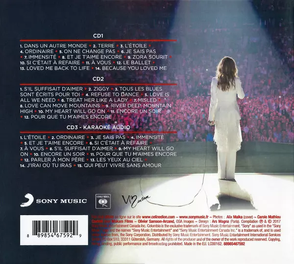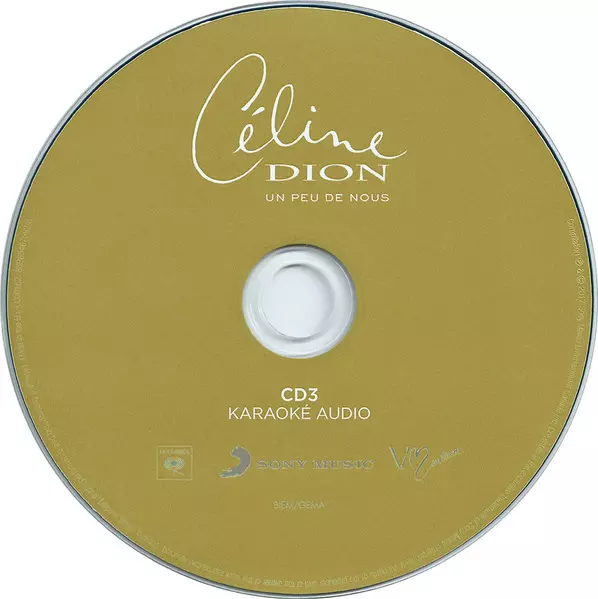 Céline Dion: Un Peu De Nous DIGI Wersja na 3CD w digipack wydanie. Ta konkretna edycja została wydana w Francja w wydawnictwie Columbia dnia 21. września 2017. Album sięga do gatunku Pop, Wokal, Ballada, Chanson i Europop. Digipack Studio Versions + Karaoke Disc.