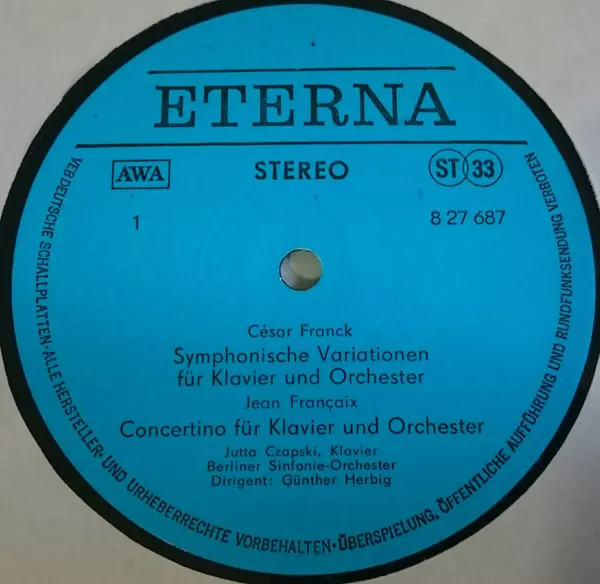 | Wykonawca | César Franck | Manuel de Falla | Jean Françaix | Berliner Sinfonie Orchester | Günther Herbig | Jutta Czapski |