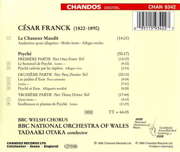 Wykonawca | César Franck | The BBC National Orchestra Of Wales | Tadaaki Otaka | BBC Welsh Chorus |