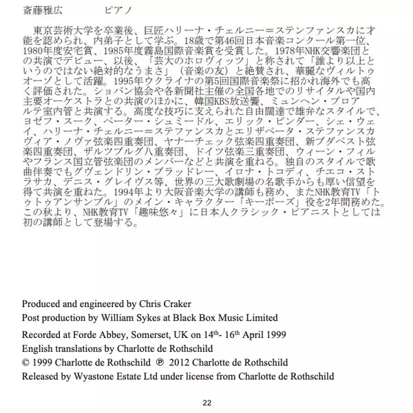 | Wykonawca | Charlotte De Rothschild | Masahiro Saitoh |