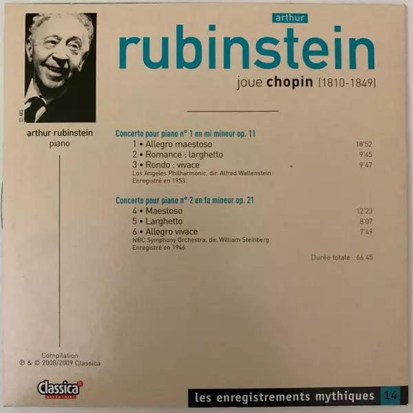| Tytuł | Arthur Rubinstein joue Chopin - concertos pour piano n° 1 et 2 |