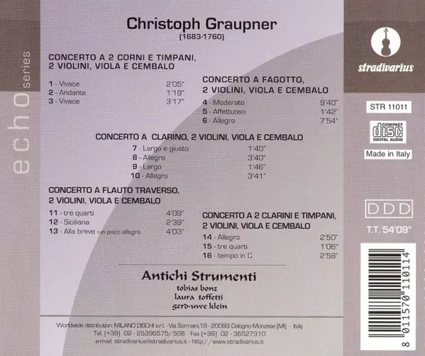 | Wykonawca | Christoph Graupner | Tobias Bonz | Antichi Strumenti | Laura Toffetti | Gerd-Uwe Klein |