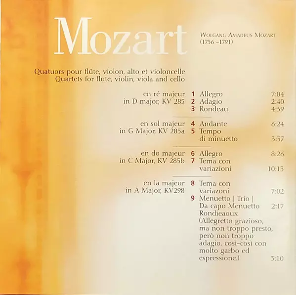 | Wykonawca | Wolfgang Amadeus Mozart | Alison McGillivray | Monica Huggett | Sonnerie | Claire Guimond | Emilia Benjamin |