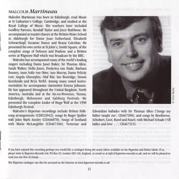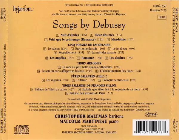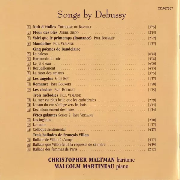 Wykonawca | Claude Debussy | Christopher Maltman | Malcolm Martineau |