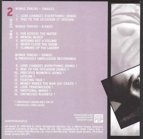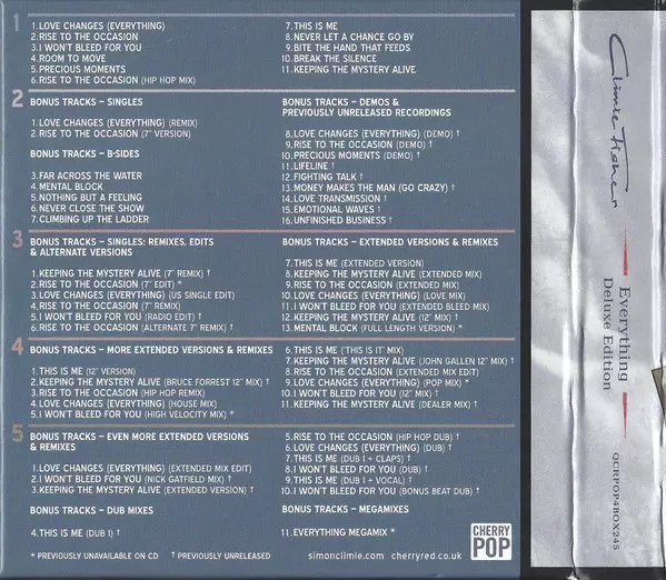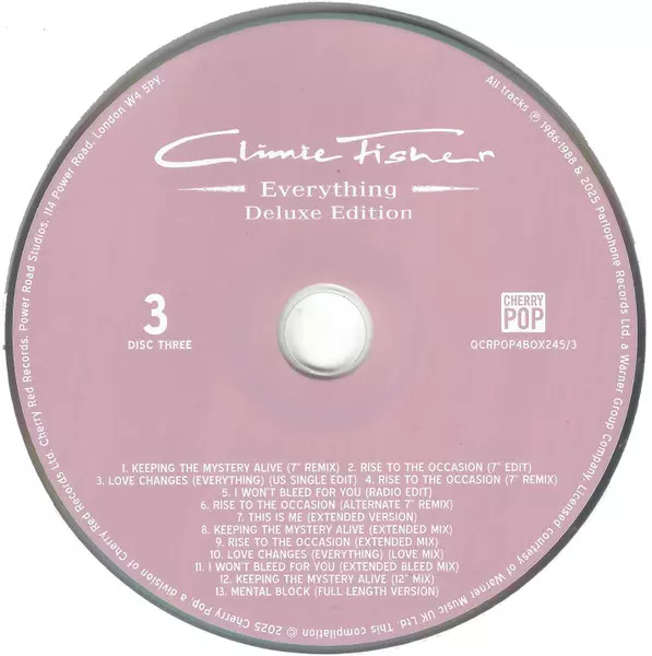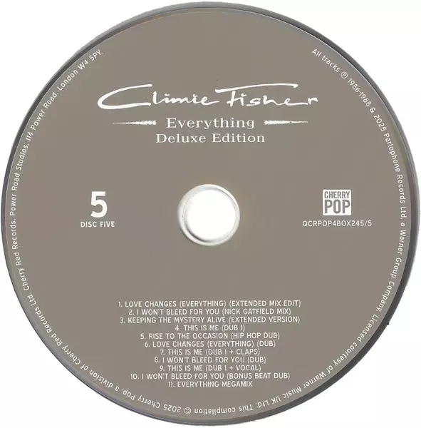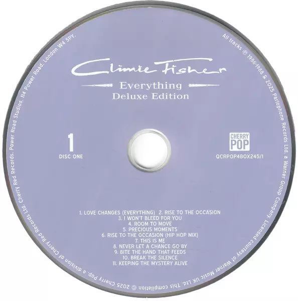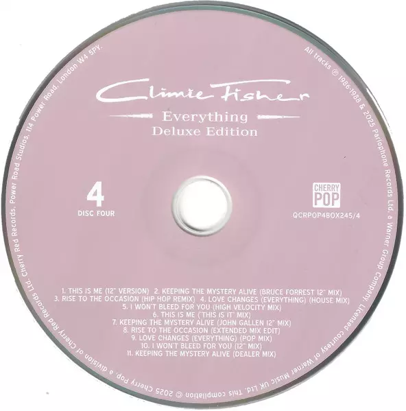 Climie Fisher: Everything Wersja na 5CD/Zestaw pudełkowy w zremasterowane wydanie. Ta konkretna edycja została wydana w WIELKA BRYTANIA w wydawnictwie Cherry Pop dnia 9. kwietnia 2025. Album sięga do gatunku Rock, Pop, Pop Rock i Synth-Pop.