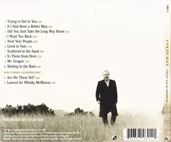 Colin Hay: Next Year People DLX Wersja na CD w deluxe wydanie. Ta konkretna edycja została wydana w USA w wydawnictwie Compass Records we współpracy z Lazy Eye Records dnia 1. czerwca 2017. Album sięga do gatunku Rock i Folk, World, & Country. Deluxe Edition.