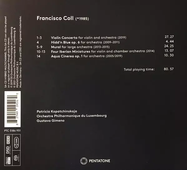 | Wykonawca | Patricia Kopatchinskaja | Francisco Coll | Gustavo Gimeno | Orchestre Philharmonique Du Luxembourg |
