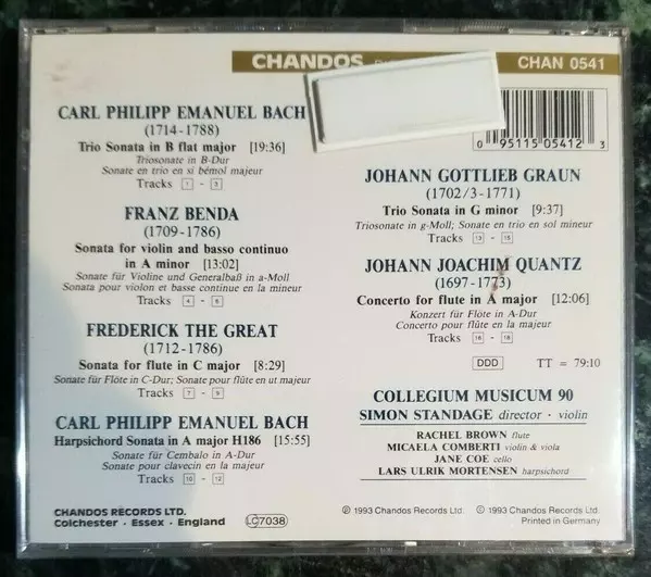 Trio Sonata For Flute And/or Violin & Continuo In B Flat Major, H. 578, Wq. 161/2 | 19:36 min | |