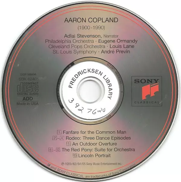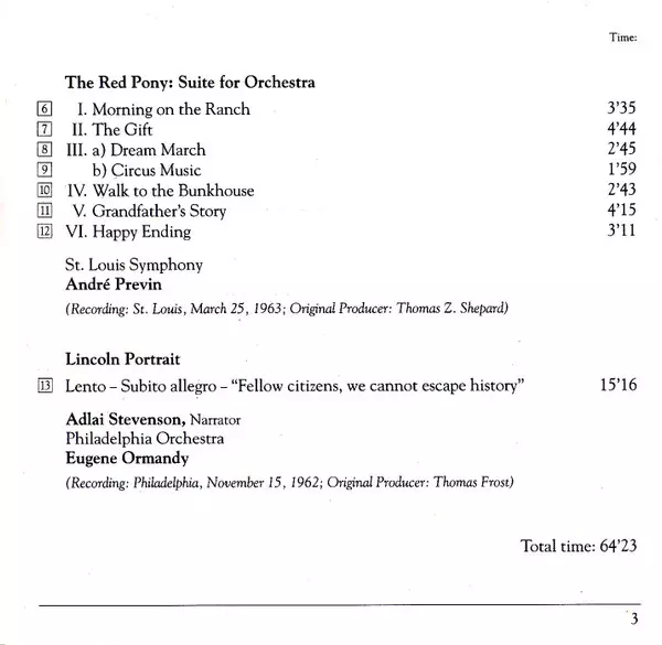 | Wykonawca | André Previn | Eugene Ormandy | Aaron Copland | Louis Lane | Adlai Stevenson |
