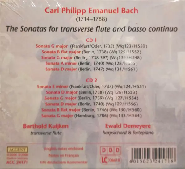 | Wykonawca | Carl Philipp Emanuel Bach | Barthold Kuijken | Ewald Demeyere |