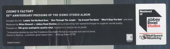 Creedence Clearwater Revival Cosmo's Factory was released in 1970 and is the band's fifth studio album. The album was recorded at Wally Heider's studios in San Francisco and at Fantasy Studios in Berkeley, California. The album was produced by John Fogerty, Creedence Clearwater Revival , and Saul Zaentz. Cosmo's Factory was the band's first albu...