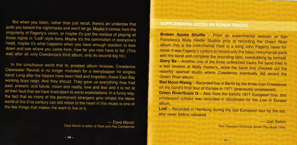 Informacje o produkcieGreen River zawiera hity i znane utwory z albumów "Green River", "Bad Moon Rising" i "Lodi", a także cover standardu bluesowego Raya Charlesa "Night Time Is The Right Time". Dodatkowy materiał zawiera "Broken Spoke Shuffle", instrumental do piosenki, której John Fogerty nigdy nie ukończył, inny niedokończony utwór zatytułow...