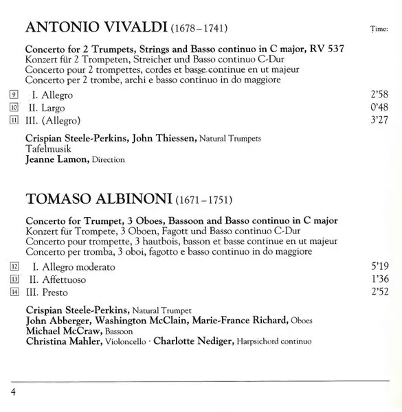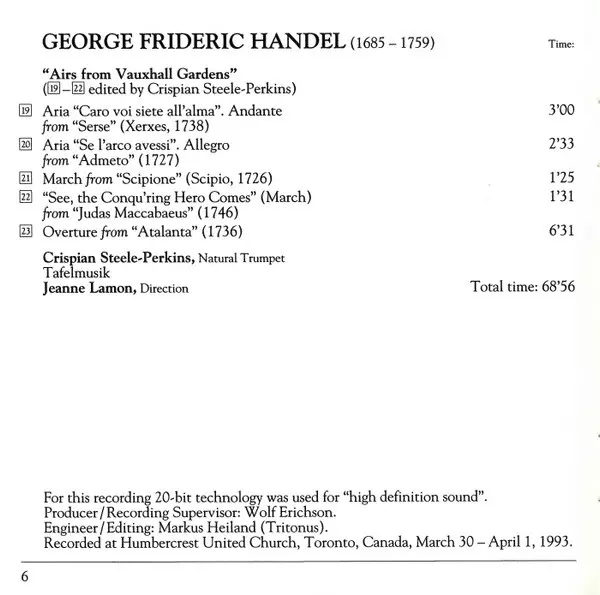 | Wykonawca | Tafelmusik Baroque Orchestra | Jeanne Lamon | Crispian Steele-Perkins |