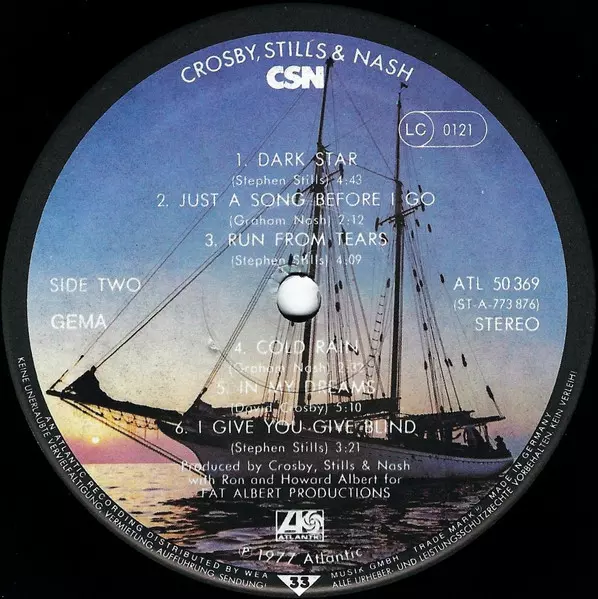 Crosby, Stills & Nash: CSN Wersja na winylu LP w standardowe wydanie. Ta konkretna edycja została wydana w Niemcy w wydawnictwie Atlantic roku 1977. Album sięga do gatunku Rock, Folk Rock, Psychedelic rock i Soft Rock. Textured Sleeve Vinyl.
