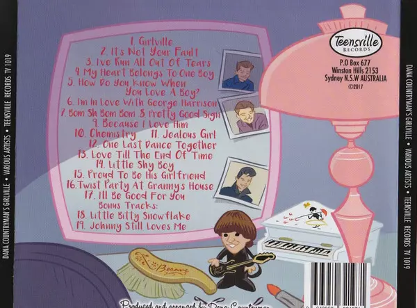 Dana Countryman: Dana Countryman's Girlville! New Songs In The Style Of Yesterday's Hits! Wersja na CD w standardowe wydanie. Ta konkretna edycja została wydana w Australia w wydawnictwie Teensville Records dnia 13. stycznia 2017. Album sięga do gatunku Rock, Pop i Power Pop.