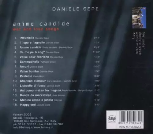 Daniele Sepe: Anime Candide: War And Love Songs Wersja na CD w standardowe wydanie. Ta konkretna edycja została wydana w Włochy w wydawnictwie Felmay we współpracy z Dunya Records dnia 3. stycznia 2023. Album sięga do gatunku Folk, World, & Country i Jazz.