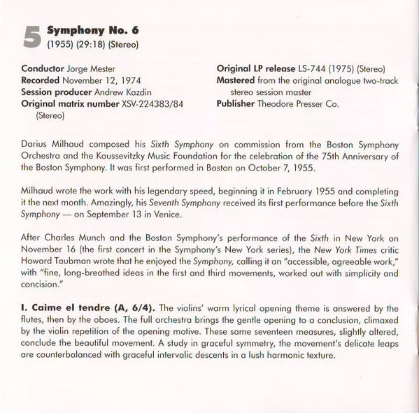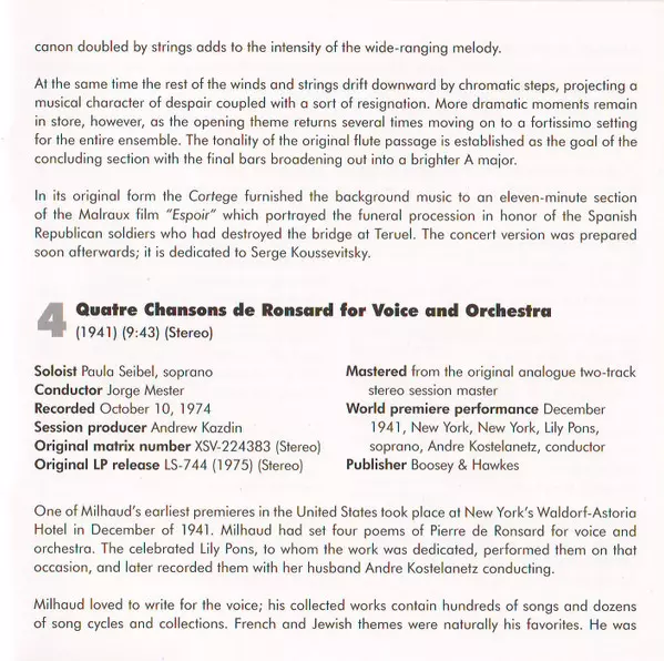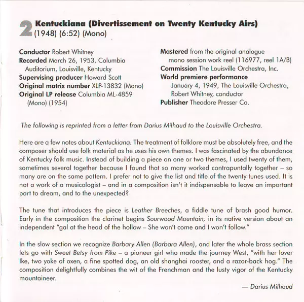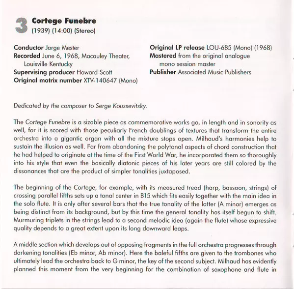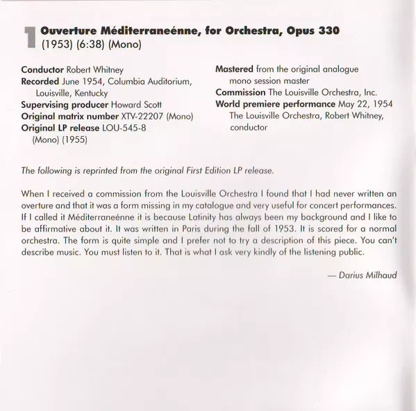 | Wykonawca | Darius Milhaud | The Louisville Orchestra |