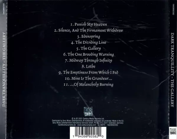 In 1995 Dark Tranquillity released their second album "The Gallery", a true classic of Gothenburg death metal. This masterpiece, complete with charming cover artwork by Kristian Wahlin and remastered by Tony Lindgren at Fascination Street Studios, is finally available again on vinyl and CD. A masterpiece of majestic melodic death metal and a col...