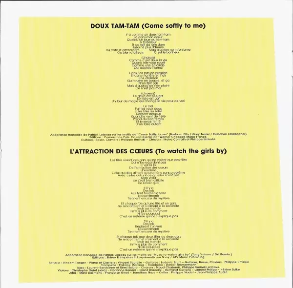 Adapted By [In French] Patrick Loiseau | Backing Vocals Moïra Conrath, Philippe Uminski | Guitar, Bass, Keyboards Philippe Uminski | Written-By Barbara Ellis, Gary Troxel, Gretchen Christopher