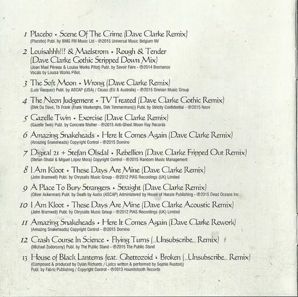| 1 | Placebo: Scene Of The Crime (Dave Clarke Remix) | 5:44 min | |